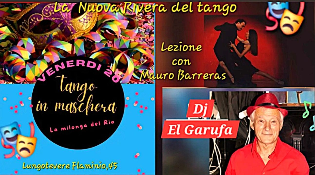 Venerdì 20 febbraio Artemare Club invita le tanguere e i tangueri maremmani a Roma per partecipare alla serata della Milonga di Carnevale, con lezione preliminare facoltativa alle ore 19 del maestro Mauro Barreras e l’assistente Alessandra Meglio, nelle eleganti sale del Circolo di Marina che si affacciano sul biondo Tevere.