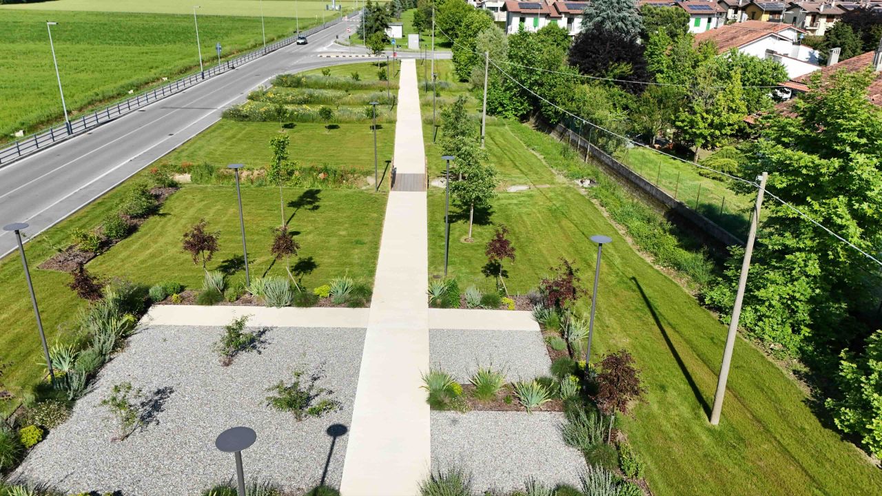 Per la sezione Verde urbano: il Comune di Capralba (CR) con la “Riqualificazione ambientale delle aree denominate Sentiero dei Livelli e Boschina e loro connessione”, colpite da eventi atmosferici nel 2019–2020; il Comune di Celle Ligure (SV) con “Un albero per la vita. Riforestazione Pineta Bottini”, dedicato alla riforestazione di un parco vincolato; il Comune di Oggiona con Santo Stefano (VA) con “Arboreto dei Continenti”, che trasforma un’area compromessa da eventi meteorici in un nuovo parco urbano; il Comune di Ponteranica (BG) con “Riqualificazione dell’area in via VIII Marzo”, che depavimenta e introduce filari autoctoni e soluzioni drenanti; il Comune di Chivasso (TO) con “Nuovi percorsi presso il Parco Fluviale del Sabiunè” che integra percorsi ciclopedonali e nuove piantumazioni in ambito fluviale; il Comune di Fermo con “Recupero del Parco di Villa Vitali”, intervento di recupero e valorizzazione di un parco storico; il Comune di Merano (BZ) con due realizzazioni: “Giardino per tutti”, intervento pilota su un’area residuale e “Parco fluviale Confluenza”, trasformazione di un’area in parco fluviale naturale; il Comune di Carpi (MO) con “Parco Città d’Europa”, riconnessione urbana e creazione di un grande polmone verde; il Comune di Grosseto con “Interventi nella Pineta del Tombolo”, azioni selvicolturali preventive per la salvaguardia dell’ecosistema; il Comune di Reggio Calabria con “Quindici agorà per quindici quartieri. Riqualificazione funzionale area Tempietto”, rigenerazione dello spazio pubblico; la Fondazione Amici del Trivulzio, Martinitt e Stelline Onlus (MI) con “Il Giardino Alzheimer del Trivulzio”, healing garden dedicato a promuovere il benessere psico- fisico delle persone con demenza; l’Università degli Studi di Milano con “Riqualificazione dell’area dell’Università di Milano all’interno del Parco di Monza”, recupero del disegno storico e valorizzazione del patrimonio verde con strumenti di comunicazione.