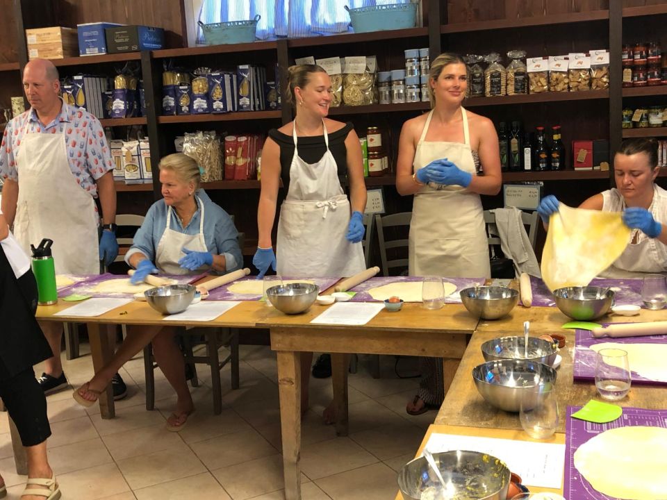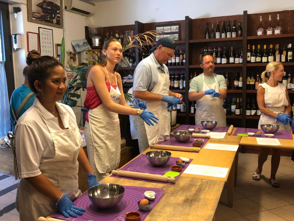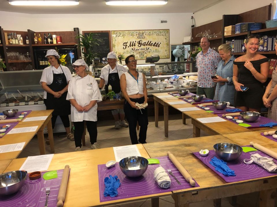 Ricevuti dalla cortese e professionale accoglienza dell'Emporio Enogastronomico F.lli Galletti, seguiti dalla competente maestria e dagli amorevoli insegnamenti delle Maestre della Cucina Italiana A.I.C.I. Doriana, Annarita e Piera, dell'Associazione “Presidi di Toscana-Officina del Gusto APS”, accompagnati dalla gentilezza e dal sorriso di Francesca e Alessia, della “Dock&Discover della Cemar agency Network” di Civitavecchia organizzatore dell'evento, hanno avuto l'opportunità di fare un breve, ma intenso viaggio all'interno dell'affascinante mondo della cucina e della gastronomia locale e nazionale. Gli ospiti hanno avuto la possibilità di apprendere le tecniche di base delle ricette tradizionali, riuscendo a carpirne i piccoli segreti per ottenere il miglior risultato e, aspetto fondamentale dell'incontro, hanno messo alla prova le loro abilità di cuochi, probabilmente sconosciute anche a loro stessi.