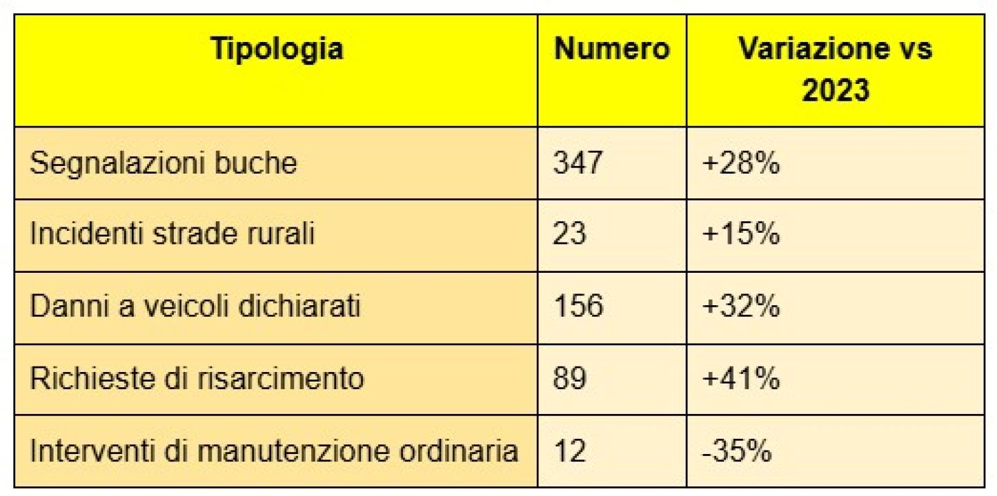 Le intense piogge degli scorsi mesi hanno aggravato una situazione già critica. Molte strade rurali presentano buche profonde, avvallamenti e un manto stradale compromesso che mette a dura prova i veicoli. Non è raro vedere automobilisti costretti a slalom tra le buche o a procedere a velocità ridottissima per evitare danni ai propri mezzi.