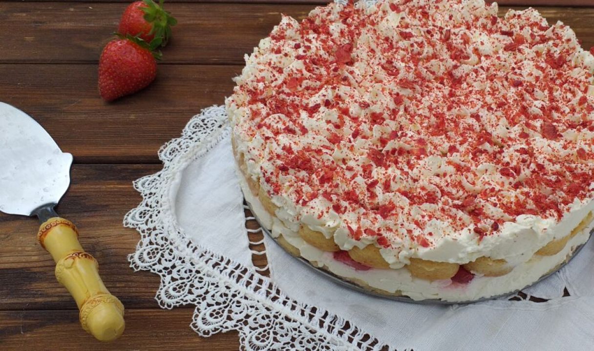 Non rimane altro che lasciare il tiramisù alle fragole in frigo per circa un’ora per farlo compattare.
