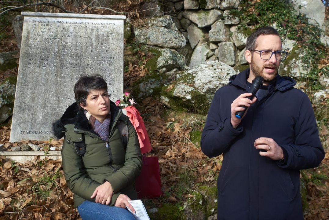 Questo nuovo ambizioso progetto di Isgrec ha ora voluto avviare un’azione a tutto campo per la valorizzazione di quella storia, con una finalità espressamente didattica. La prima fase del progetto, che si conclude in questi giorni, si è dunque incentrata sul coinvolgimento di circa 80 studenti della Provincia, formati sulla vicenda della deportazione e del genocidio ebraico grazie ad incontri oline con Elena Vellati (responsabile didattica di Isgrec), Luca Bravi (direttore del Museo della Deportazione di Prato) e Micaela Frulli (docente di Diritto internazionale dell’Università di Firenze). A dicembre 2025, per il gruppo di studenti e studentesse (e per i docenti accompagnatori) sono state organizzate le visite guidate all’ex campo di concentramento di Roccatederighi: 2 pullman da 50 posti, le cui spese sono state coperte da un finanziamento della Provincia di Grosseto, hanno accompagnato gli studenti e le studentesse delle scuole grossetane (Polo Aldi, Liceo Rosmini, Polo Bianciardi, Fossombroni, Leopoldo di Lorena, ITI Manetti-Porciatti) alla struttura del Centro civico di Roccatederighi, dove la Pro Loco locale ha riallestito per l’occasione la mostra di Isgrec dedicata alle persecuzioni antiebraiche nella Provincia di Grosseto (donata alla comunità di Roccastrada da Isgrec alcuni anni fa). Ad accogliere gli studenti sono stati Marcella Fiorenti, Assessora alla scuola del Comune di Roccastrada, e Roberto Nizzi (Associazione di Pitigliano La Piccola Gerusalemme) portatore di una testimonianza familiare legata alle vicende del campo; un piccolo saluto è stato portato da Giulio Balocchi, Presidente Anpi di Roccastrada, e Gilberto Galloni, Presidente Pro Loco di Roccatederighi. A seguire gli studenti si sono spostati presso l’ex seminario vescovile che fu sede del campo; qui dopo l’introduzione storica a cura di Ilaria Cansella (Isgrec), si sono susseguite le riflessioni di Giovanni Gentili, Sindaco di Pitigliano (Comune sede della maggiore comunità ebraica grossetana, da cui erano provenienti moltissimi degli ebrei internati), e di rappresentanti grossetano del Parlamento toscano degli studenti e della Consulta provinciale.